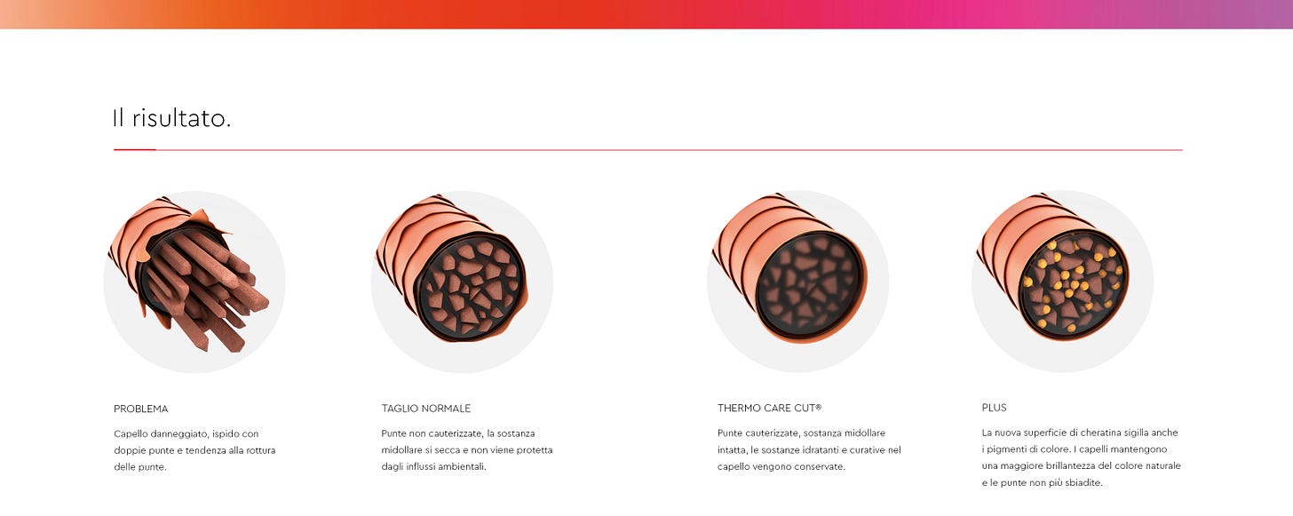 Maggiore luminosità: I capelli tagliati con la tecnica Thermo Care Cut® tendono a diventare più lucenti e vitali.